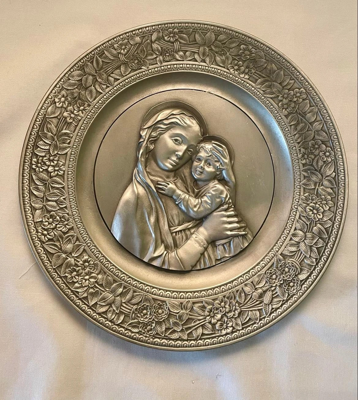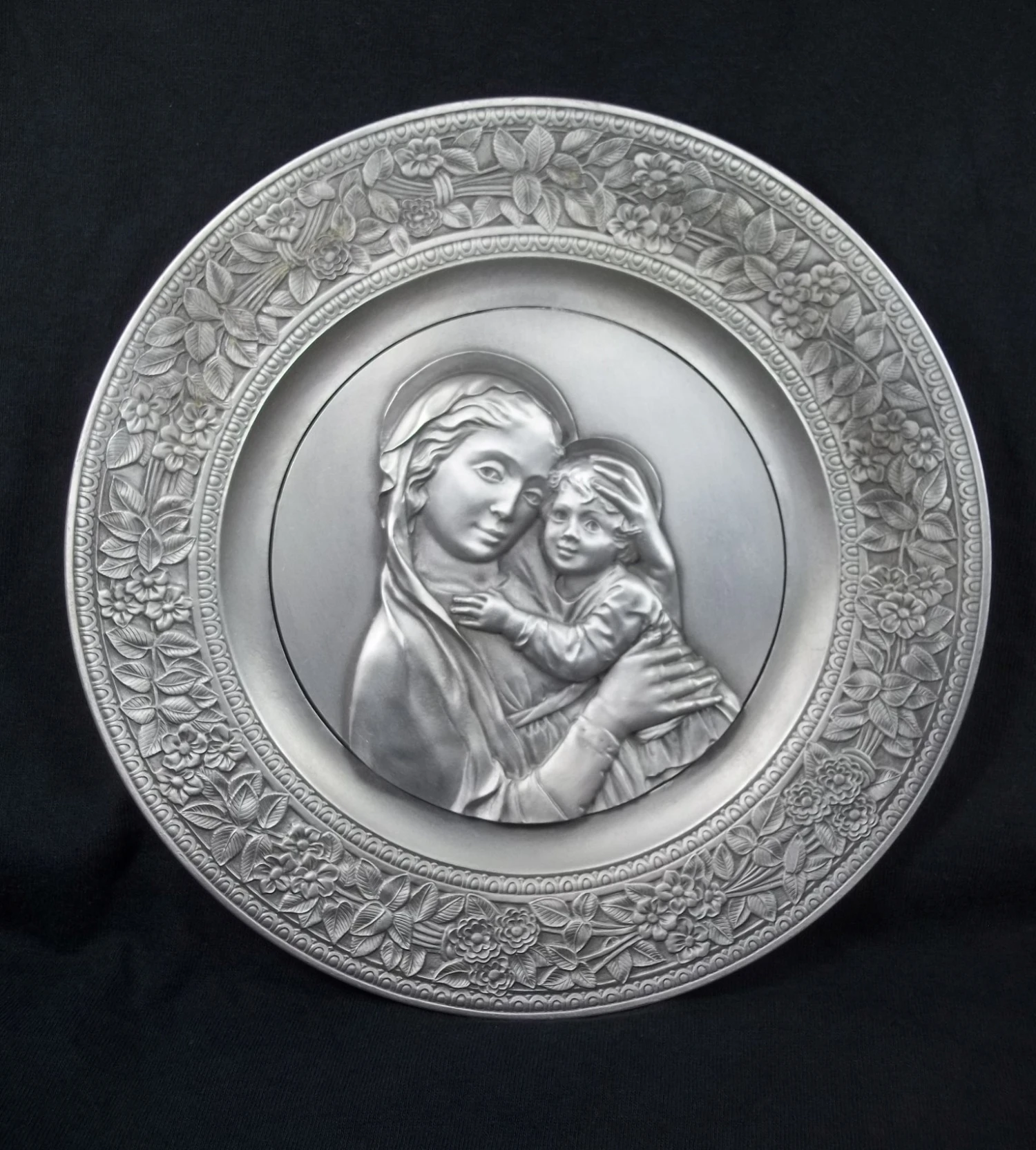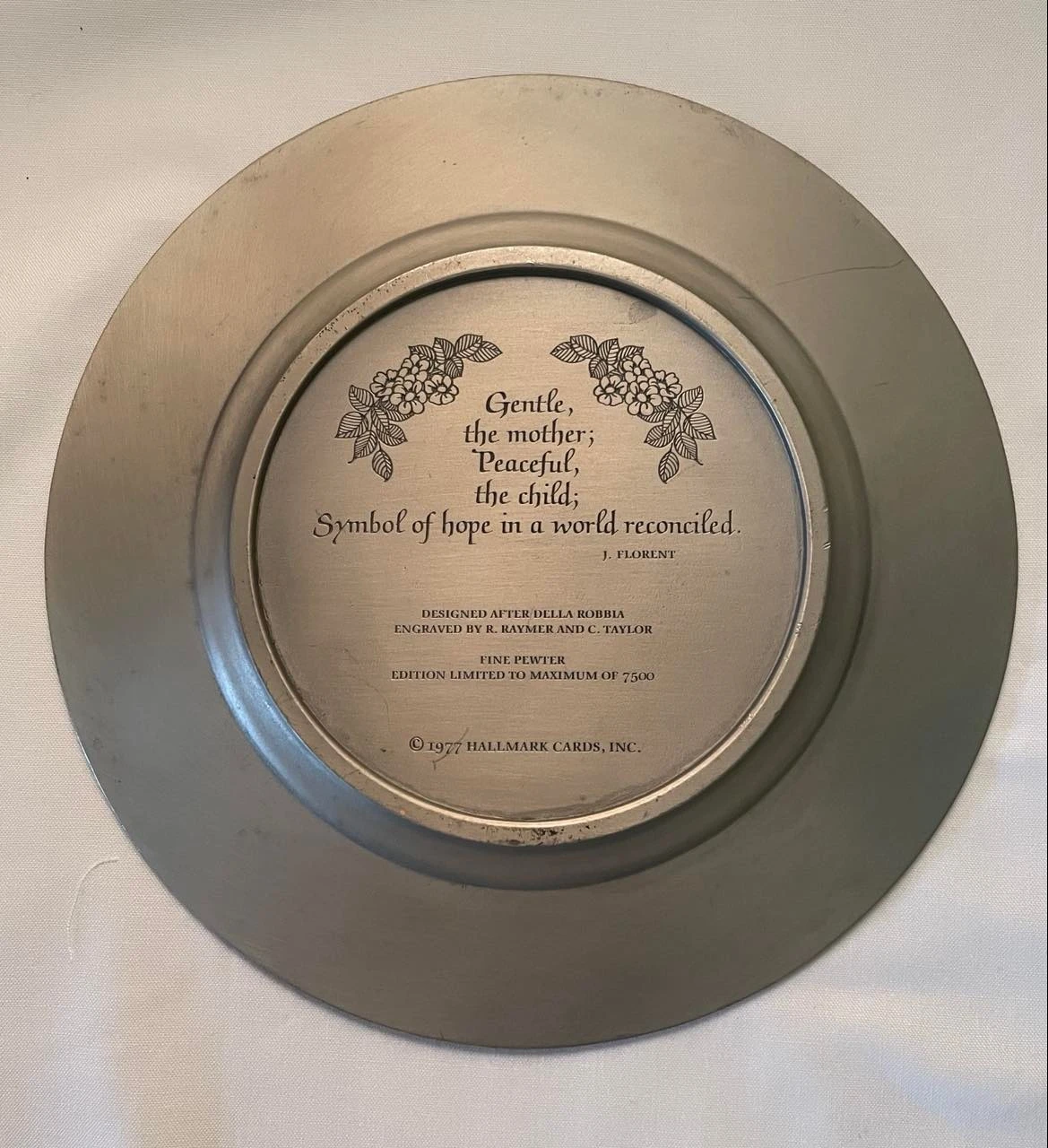 This is one of the most elegant pieces Hallmark ever produced. The Della Robia border is highly detailed. With Madonna and Child in the center.