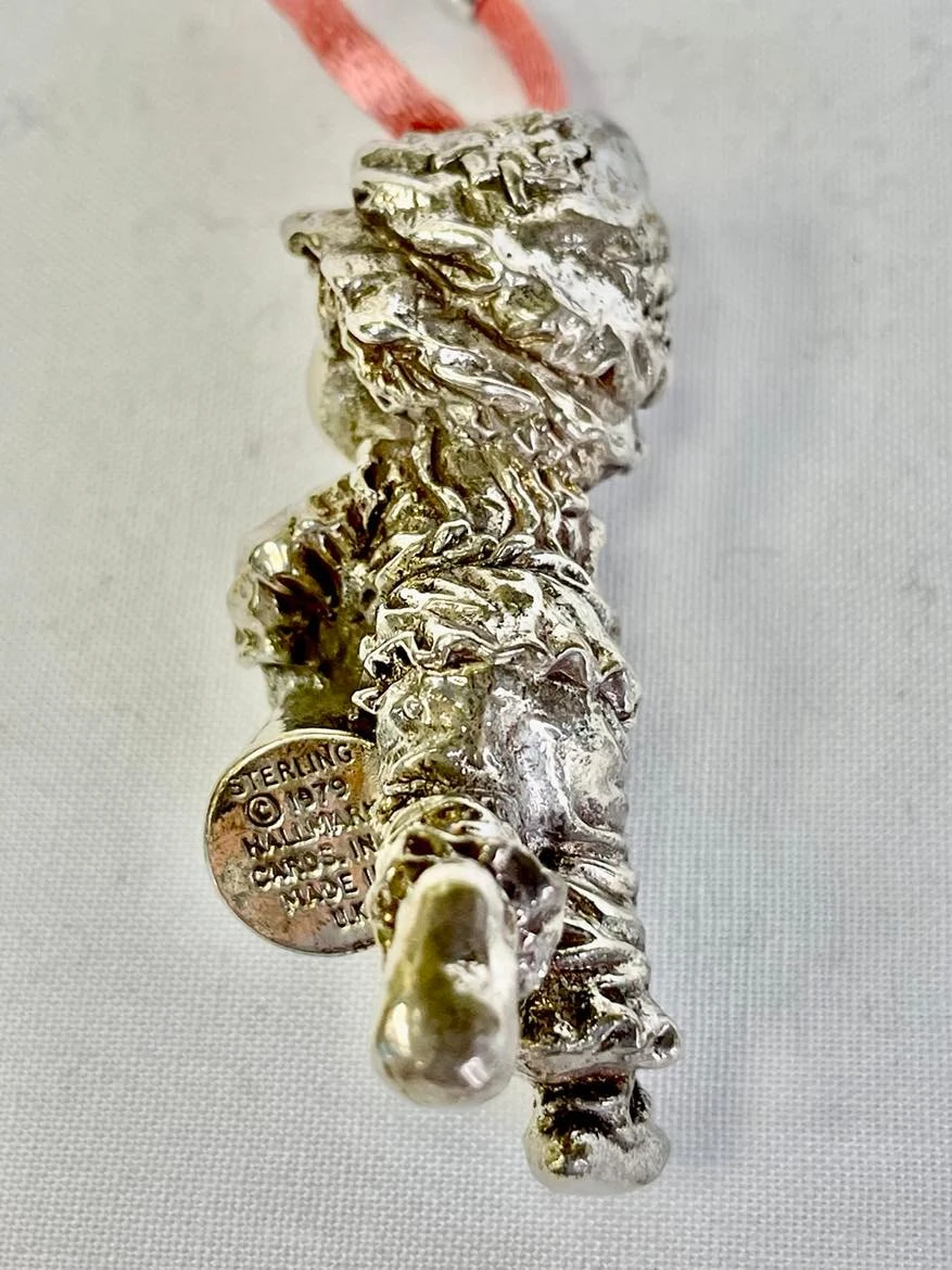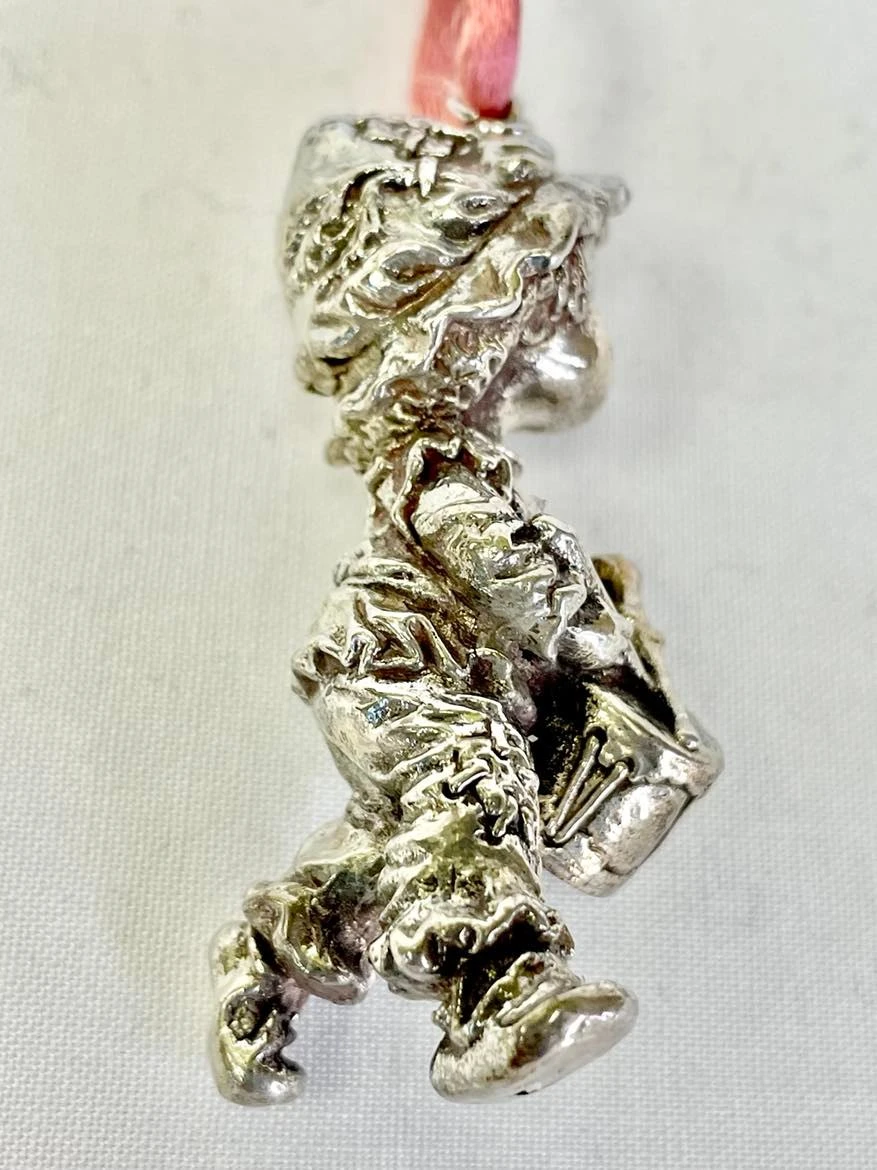 RARE Hallmark 1980 The Little Drummer Boy .999% Sterling Silver Ornament from the Little Gallery Collection Designed by Hallmark Artist: Mary Hamilton One Of Only 3927 Produced The Little Drummer Boy Silver Ornament was Manufactured in 1980 for Hallmark Cards Little Gallery Series as limited to 9000 pieces, but only 3,927 ever made. Holding forth his dated drum, his angelic face appears to be heralding the angels. He is hallmarked on the bottom of the drum Sterling, © 1979 Hallmark Cards, Inc., Fashioned in England of .999% pure silver. He measures approximately 2 1/2 inches tall not including the hanging loop. This ornament is gleaming sterling silver. As with all vintage silver, may require proper polishing upon receipt depending on your preferences. PLEASE NOTE: The pictures do not do this beautiful ornament justice…Silver is hard to photograph |