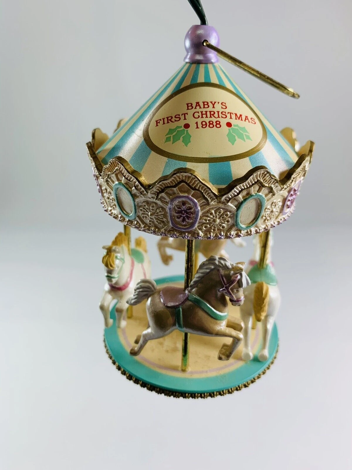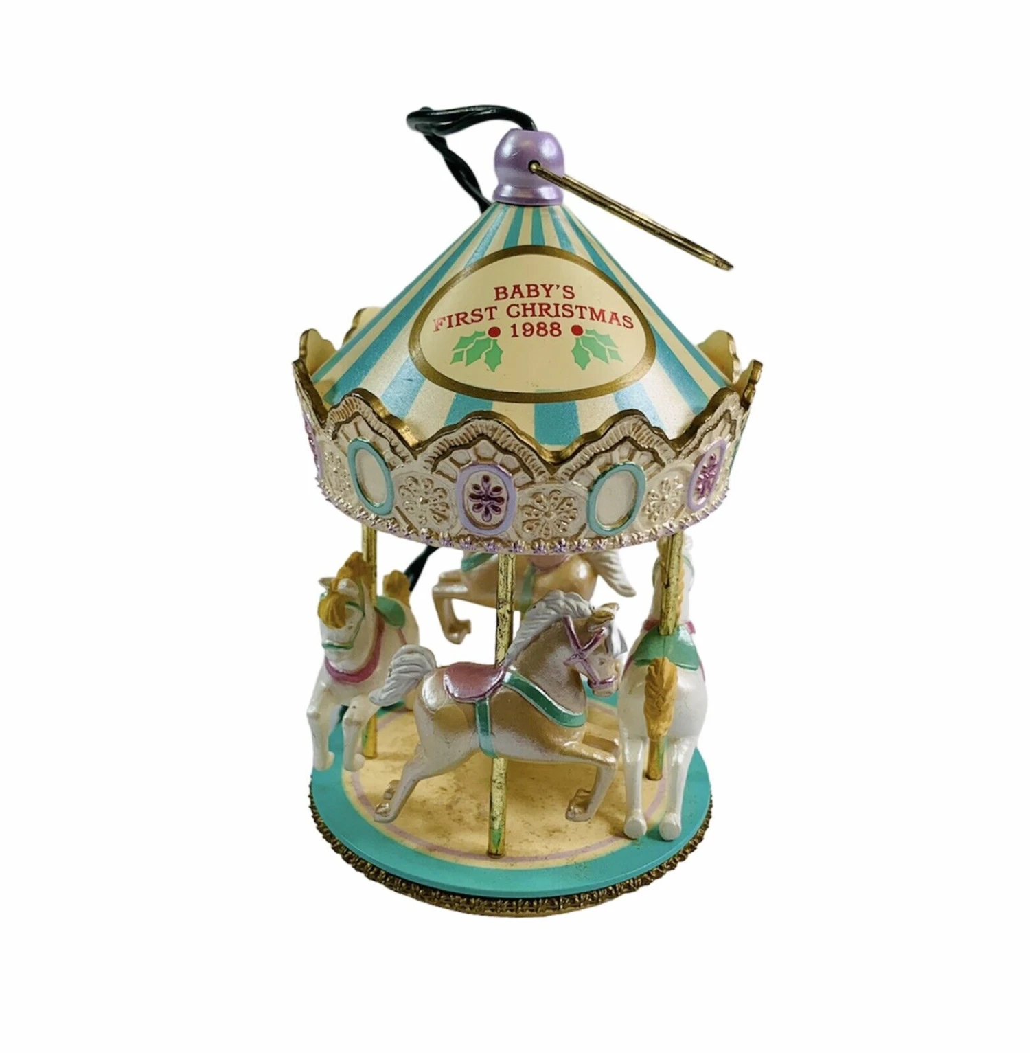 Carousel spins as the canopy light glows from above.
