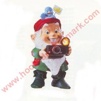 A bluebird holds a “cheese” sign, assisting this photographer elf.