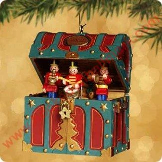 Winding the key sets these “Merry Music Makers” in motion while they joyfully play “Toyland.”