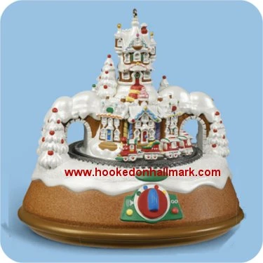 To send the train on its way, turn the dial to one of four preset positions and hit the “Go” button. The first three positions represent Gumdrop Junction, Sleighbell Center and Santa’s Workshop. Listen to the conductor call out the sights to see at each stop. The fourth positioin sends the train on a scenic trip while the “theme” song plays. To hear individual sound effects, hit the sound button.