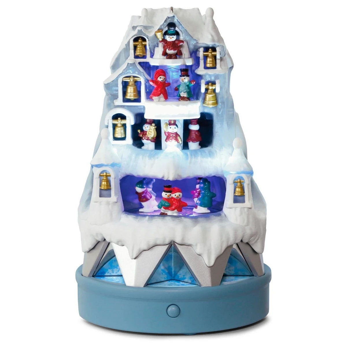 Capture the essence of the season with this interactive ornament for your tree. Festively dressed snowmen move about their lighted rooms as music from “Winter Wonderland” plays.