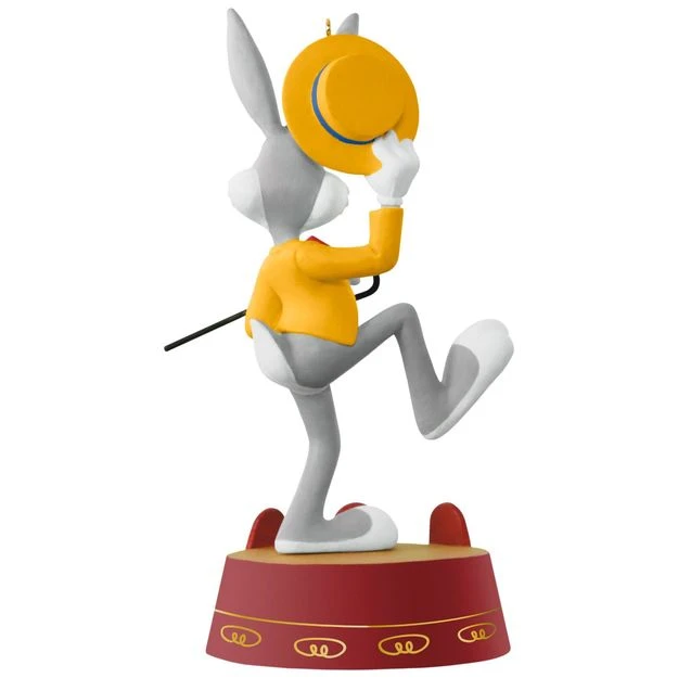 BUGS BUNNY takes center stage to entertain your family and holiday guests with this Christmas ornament. Press the button to hear a version of The Bugs Bunny Show theme song as the star shows off his signature toothy grin, holding his hat and looking every part the perfect entertainer in his yellow overcoat and red bowtie. Requires 2 LR44 batteries, included. (Purchase replacement batteries)