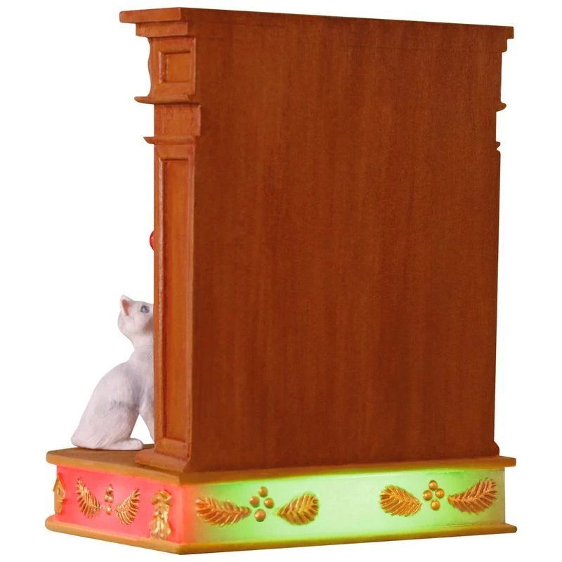 Catch Santa as he fills stockings, hung by the chimney with care, with toys and candy. This Christmas tree ornament’s base and fireplace light up when connected to Hallmark’s Magic Cord (sold separately). Press the button to see it perform a synchronized sound and light show with music from “(There’s No Place Like) Home for the Holidays.”