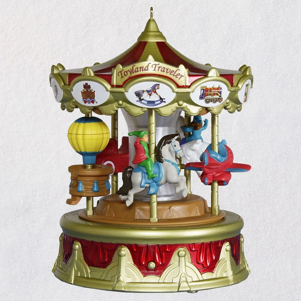 A day at the amusement park is hard to top…unless the ride transports you to Santa’s magical wonderland! 2nd in the Christmas Carnival series, this Christmas tree ornament features a carousel with whimsical “seats”—from a hot air balloon to a Pegasus and more. Connect it to the Keepsake Storyteller Cord (sold separately) to see a continuous light and motion effect. Press the button to hear it play music from “Toyland.” Connect other Christmas Carnival Storyteller ornaments, each sold separately, to unlock additional amazing interactive performances. No batteries necessary.