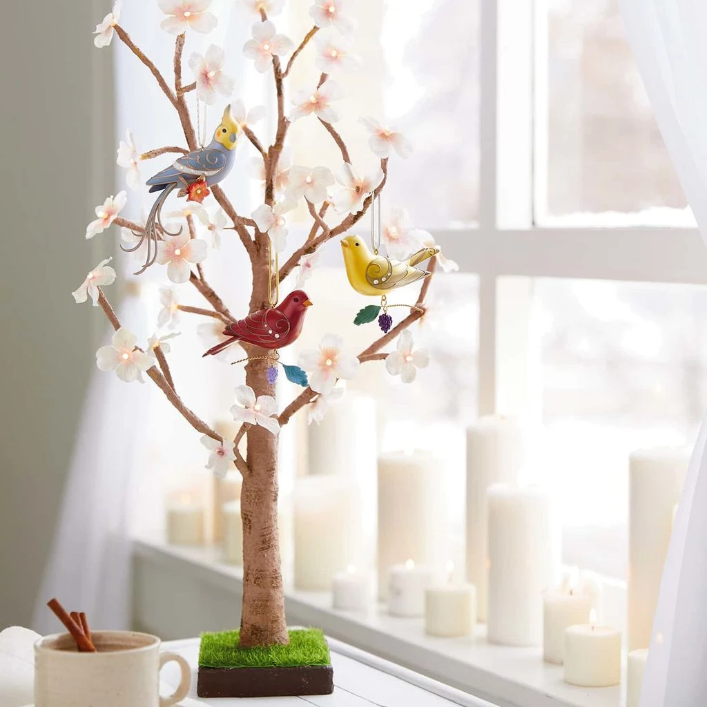 Spring into seasonal decorating with this pre-lit tree that features glittery flower lights on its branches. Sure to enhance your favorite decorations, it’s perfect for displaying a collection of the Fairy Messengers, Beauty of Birds or Brilliant Butterflies Keepsake Ornament series (not included). Slide the switch on the base to see the budding branches illuminate. Light feature is battery-operated.