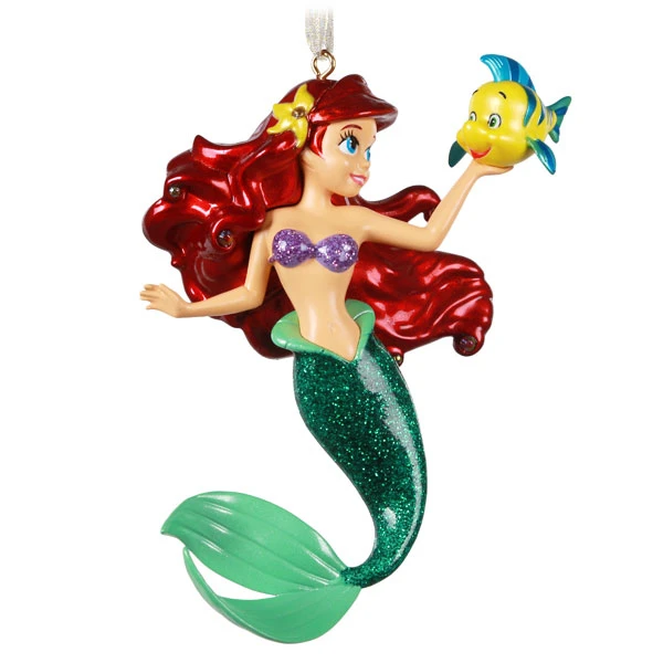 Delight in friendship and the thrill of discovery with this charming Christmas tree ornament featuring Ariel and her finned friend Flounder from “The Little Mermaid.” Fans of the adventurous undersea princess will love displaying this premium metal decoration with its sparkly glitter and gemstone accents.