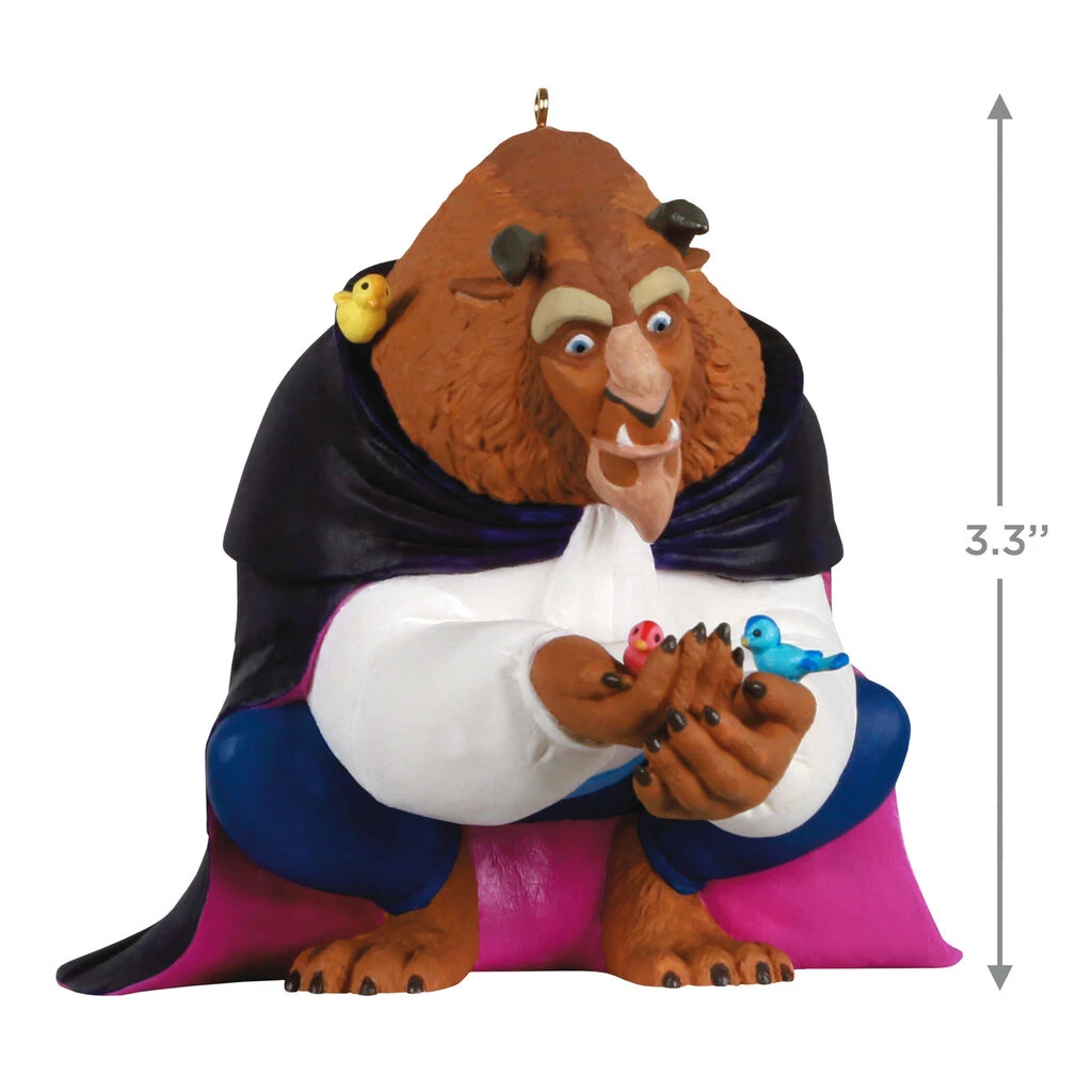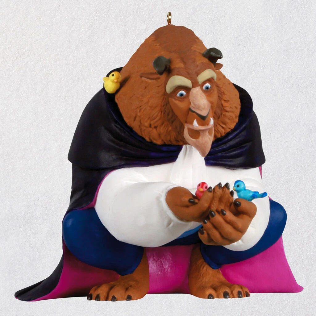 Discover the prince behind the beastly exterior with this Christmas tree ornament. Fans of “Beauty and the Beast” will love reliving this classic moment as the Beast, dressed in his winter cloak, begins to show a softened heart by tending to tiny birds. Coordinating Something There Belle ornament sold separately.