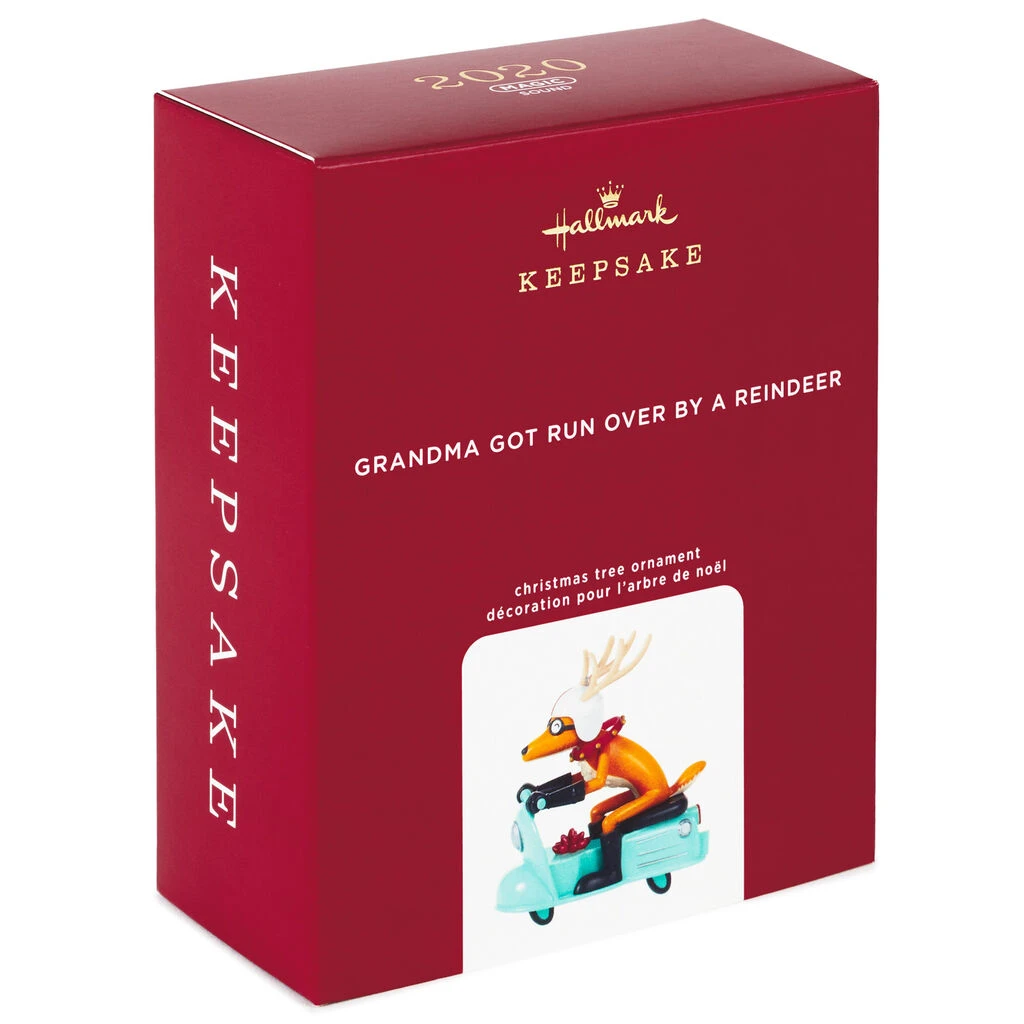 Are you a fan of over-the-top comedy and Christmas carols? Then this ornament is just your speed! Ramp up the holiday fun with this hilarious scooter-riding reindeer Christmas tree ornament. The musical decoration plays part of the classic Elmo & Patsy song “Grandma Got Run Over by a Reindeer” (battery-operated) and features a helmeted deer driving a motorbike.