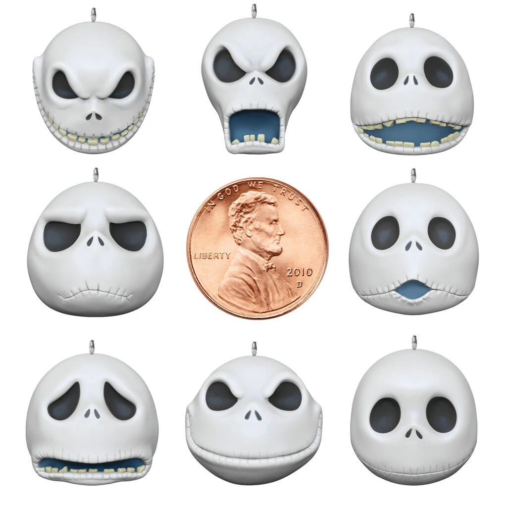 Display your love of “The Nightmare Before Christmas” with Jack the Pumpkin King. This incredible set includes 8 highly detailed porcelain mini Christmas tree ornaments, each featuring one of Jack’s distinctive expressions, and all sure to make a hauntingly cool addition to your holidays. Coordinating mini tree topper and mini tree skirt sold separately.