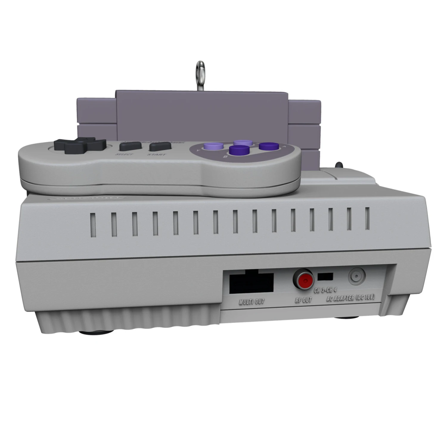 Recall hours spent sitting in your bean bag chair parked in front of the television, video game controller in hand. Nothing mattered except defeating Bowser and ultimately completing the entire “Super Mario World” game. Relive the care-free fun when you display this Super NES console Christmas tree ornament that lights up and plays the familiar music and sounds of the iconic video game (battery-operated).
