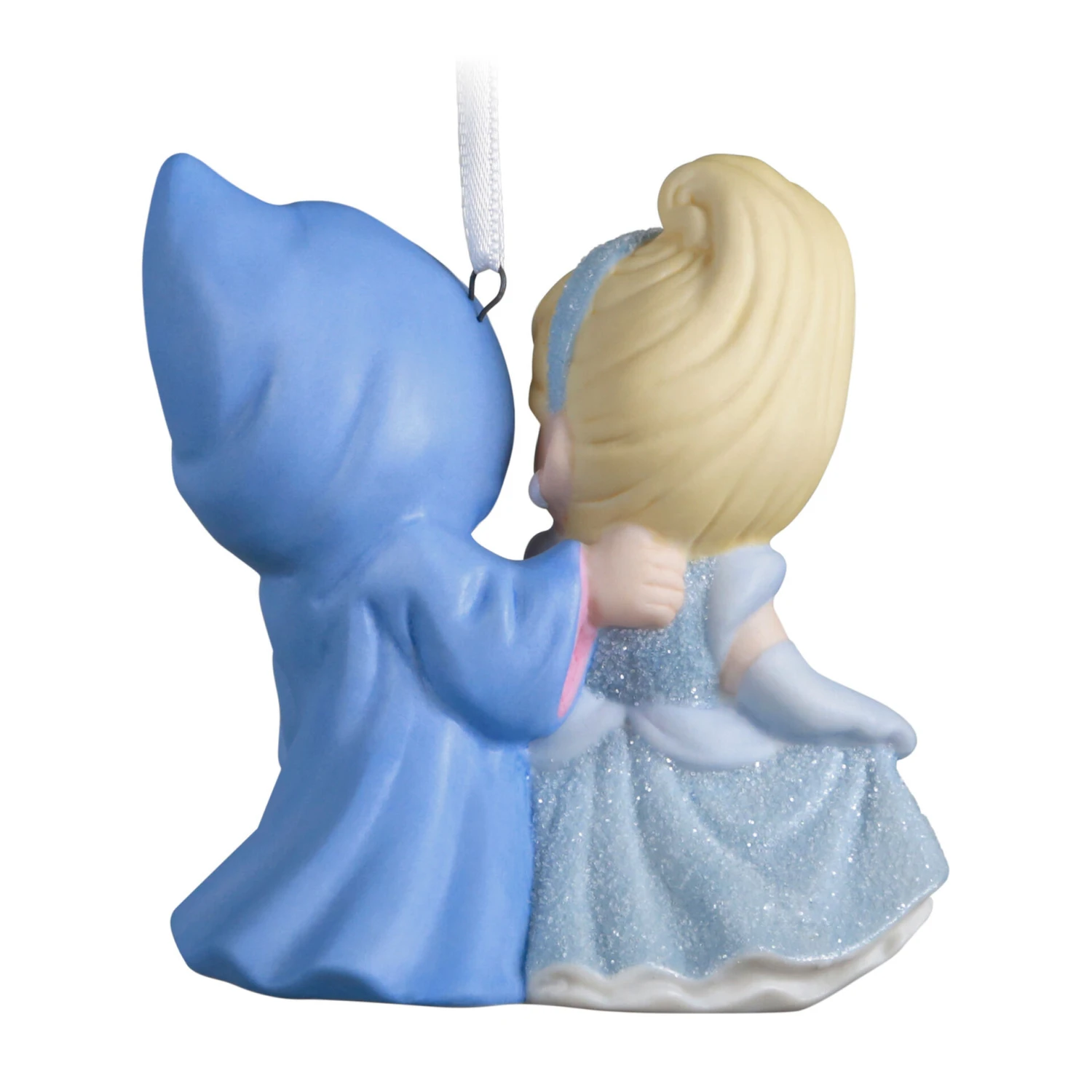 Make the beloved story of “Cinderella” a part of your holiday traditions with this porcelain Christmas tree ornament that depicts the Disney Princess and her Fairy Godmother, who transformed Cinderella’s tattered dress into a sparkling blue ball gown. Signature Precious Moments styling captures the sweet charm of these beloved characters.
