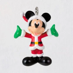 Mickey Mouse has dressed the part to wish you a very merry Christmas. This cheery miniature Christmas tree ornament features the beloved Disney character sporting his holiday spirit in a Santa suit. For a perfect pairing, display it with our coordinating Merry Lil’ Minnie, Pluto and Goofy mini ornaments (each sold separately).