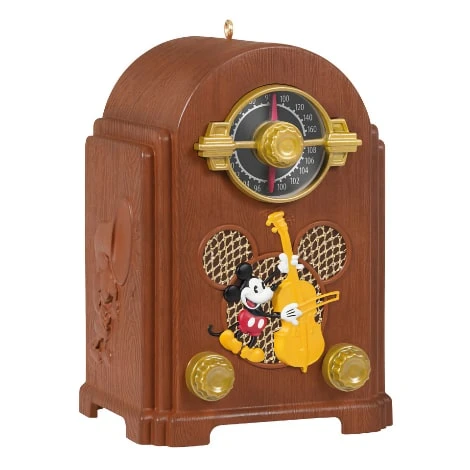 Bring the sounds of Disney magic into your living room, just like in the old days, with this delightful Christmas tree ornament inspired by a vintage console radio. Turn the dial to see the radio light up and hear fun broadcasts commentated by Mickey Mouse, including the songs “When You Wish Upon a Star” and “You Can Fly! You Can Fly! You Can Fly!” (battery-operated).