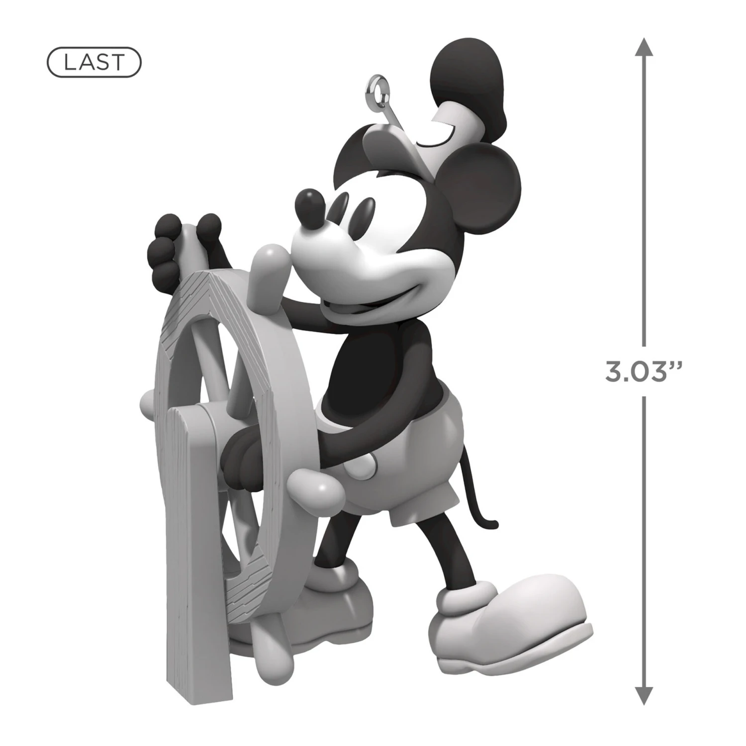 Reminisce in what is widely regarded as the debut of Walt Disney’s beloved character, Mickey Mouse, in the 1928 animated short “Steamboat Willie” with this Christmas tree ornament. Featuring a grayscale Mickey dressed as a captain at the helm of his ship, this fun addition to the Mickey’s Movie Mouseterpieces series is a timeless gift for classic Disney fans.
