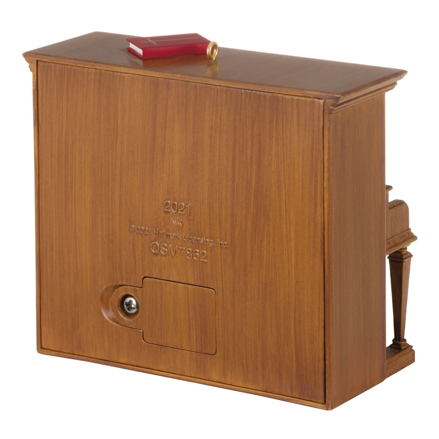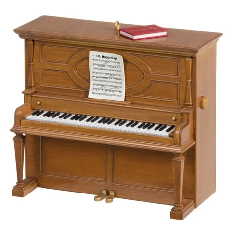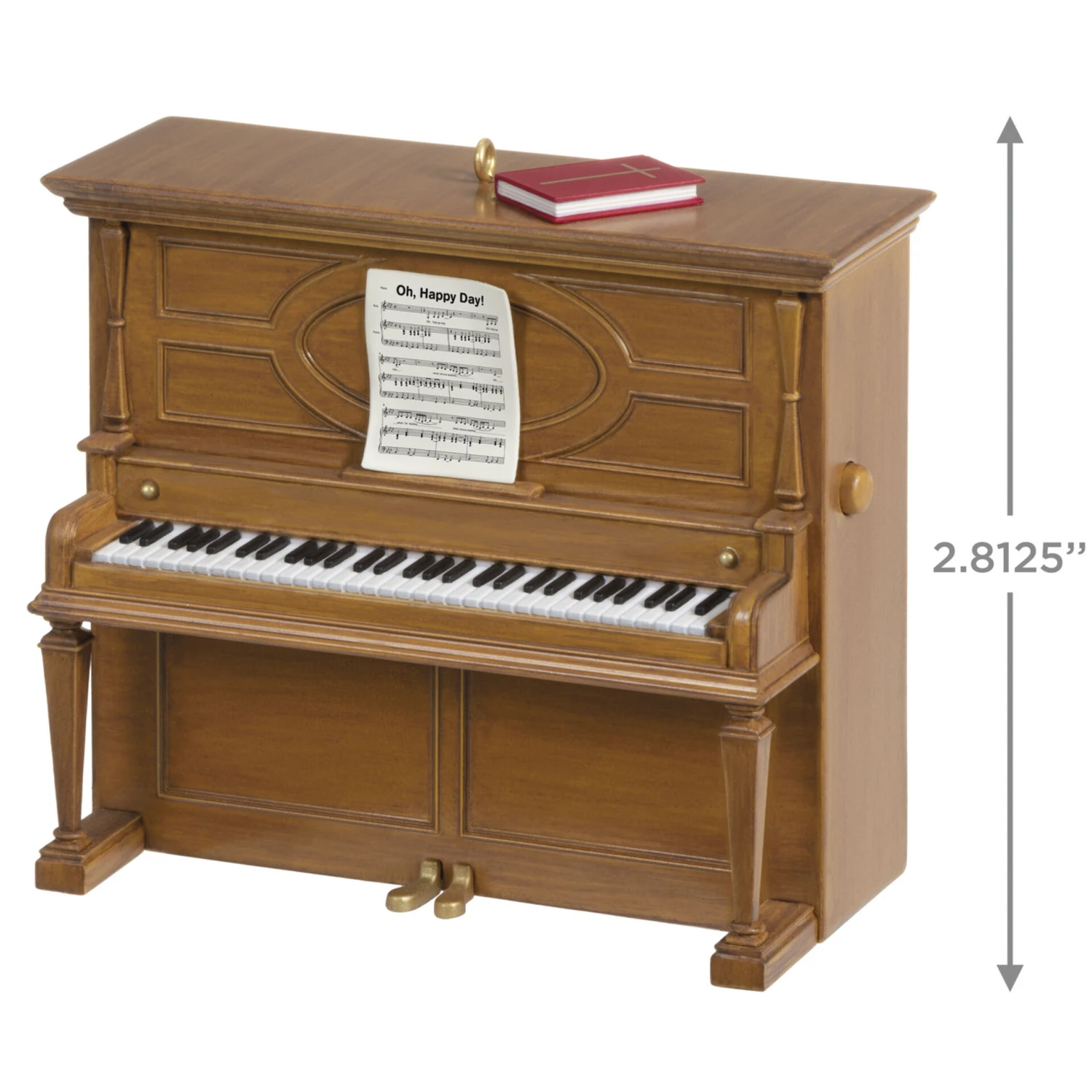 Bring the sounds of the season to your tree with this musical Christmas ornament. The traditional upright piano features a warm woodgrain finish. For an extra dose of holiday cheer, it plays an inspiring gospel choir performance of the timeless hymn “Oh Happy Day” (battery-operated).