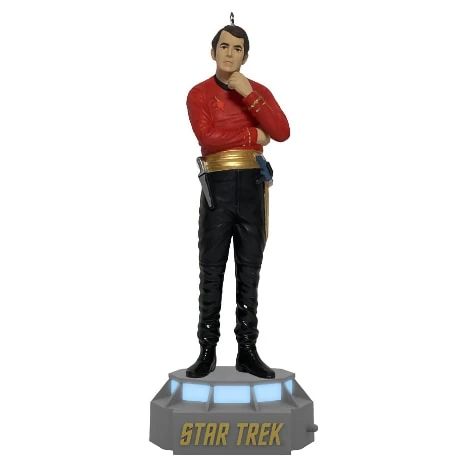 As chief engineer of the U.S.S. Enterprise, Montgomery Scott played a key role in executing Starfleet missions with Captain James T. Kirk. Scotty’s skills proved invaluable to his shipmates when whisked away to a mirror universe ruled by the Terran Empire. Plug this Christmas tree ornament into Hallmark’s Keepsake Power Cord (sold separately) for constant illumination, then press the button to start a sound and light show based on the classic original Star Trek series episode “Mirror, Mirror.” Connect all of the Star Trek Storytellers ornaments—Captain James T. Kirk, Lieutenant Hikaru Sulu, Lieutenant Nyota Uhura, First Officer Spock, Ensign Pavel Chekov, Doctor Leonard McCoy and Lieutenant Commander Montgomery Scott—and the U.S.S. Enterprise Tree Topper (each sold separately) to unlock additional interactive performances.