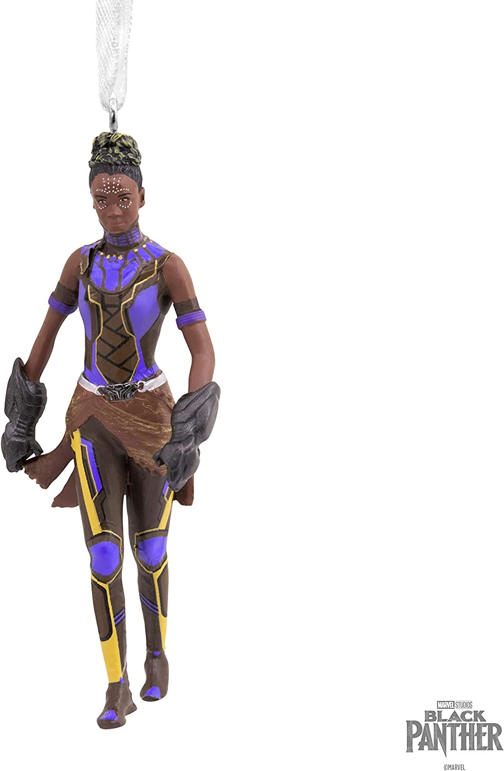 Drawing from her boundless intellect, unrivaled talent and tenacious wit, Shuri designs futuristic equipment like the Black Panther suit. Celebrate the legacy of Marvel Studios’ “Black Panther” with this Christmas tree ornament that features King T’Challa’s younger sister wearing her iconic panther-inspired Vibranium gauntlets.
