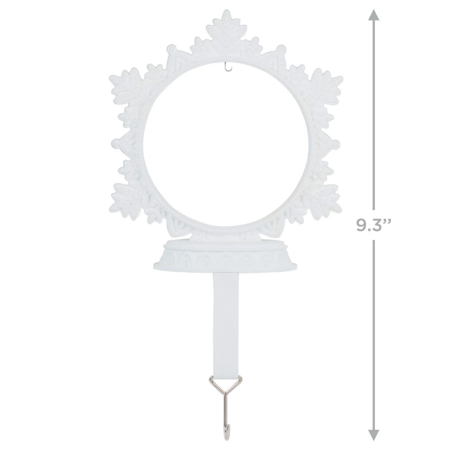 Hang your stockings—and a special ornament—with care! This embossed, snowflake-shaped stocking hanger features an integrated Christmas tree ornament hook, so you can show off one of your favorite Keepsake Ornaments while leaving your stocking for Santa to fill.